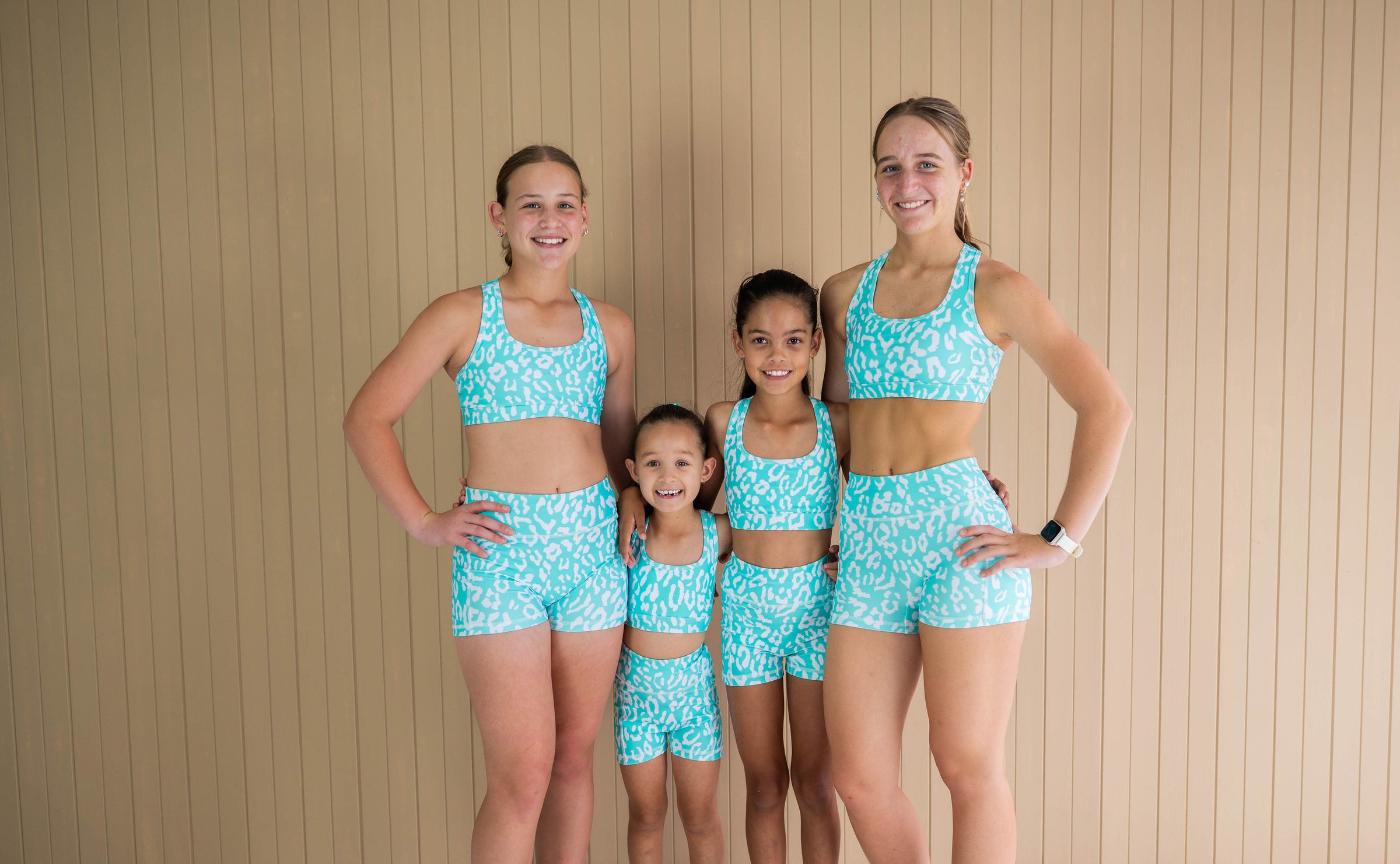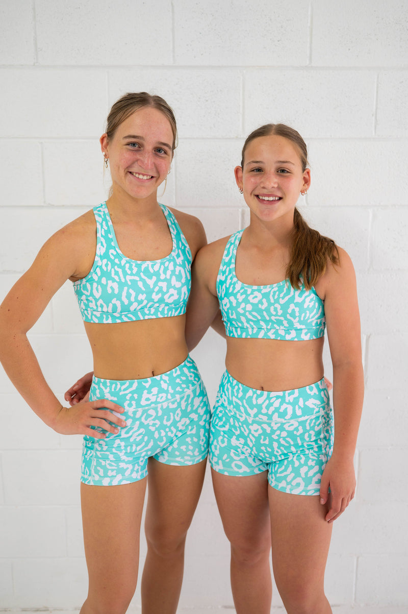 Active Bike Shorts - Pockets (Youth) - Mint Green Leopard